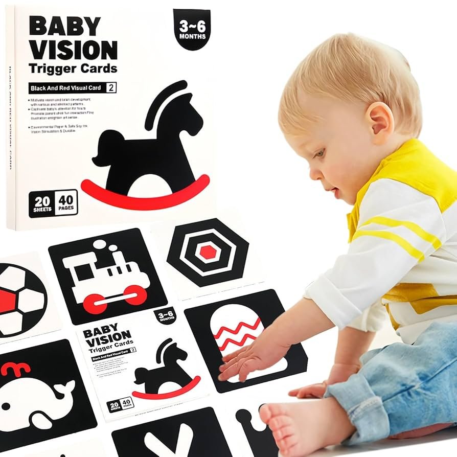 Kortelės skirtos kūdikio regėjimo stimuliacijai, raidos etapų paspartinimui bei ,,pilvelio laiko” prailginimui. Komplektą sudaro 20 dvipusių kortelių 14,5×14,5 cm su paveiksliukais iš abiejų pusių, viso yra 40 skirtingų vaizdų. Kortelėse pavaizduotos juoda, balta ir raudona spalvos ir sudėtingesnės figūros arba kasdien atpažystami siluetai (gyvūna ir daiktai). Raudona spalva čia pateikiama įvairiose situacijose ir skirtinguose kontrastuose, kad kūdykis galėtų lavinti regėjimo subtilybes ir taip greičiau pradėti matyti didesnį spalvų spektrą.