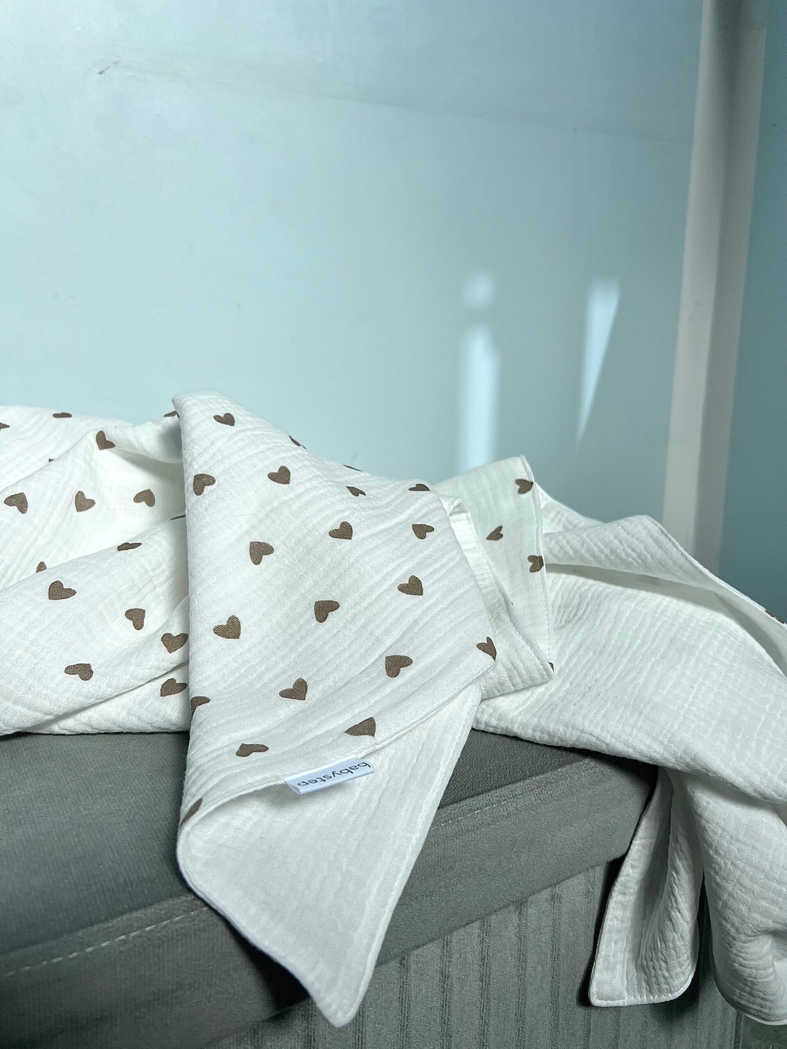 Atraskite nepaprastai švelnų, kvėpuojantį ir natūralų muslino pleduką, kuris taps nepakeičiamu Jūsų mažylio palydovu nuo pirmųjų akimirkų.